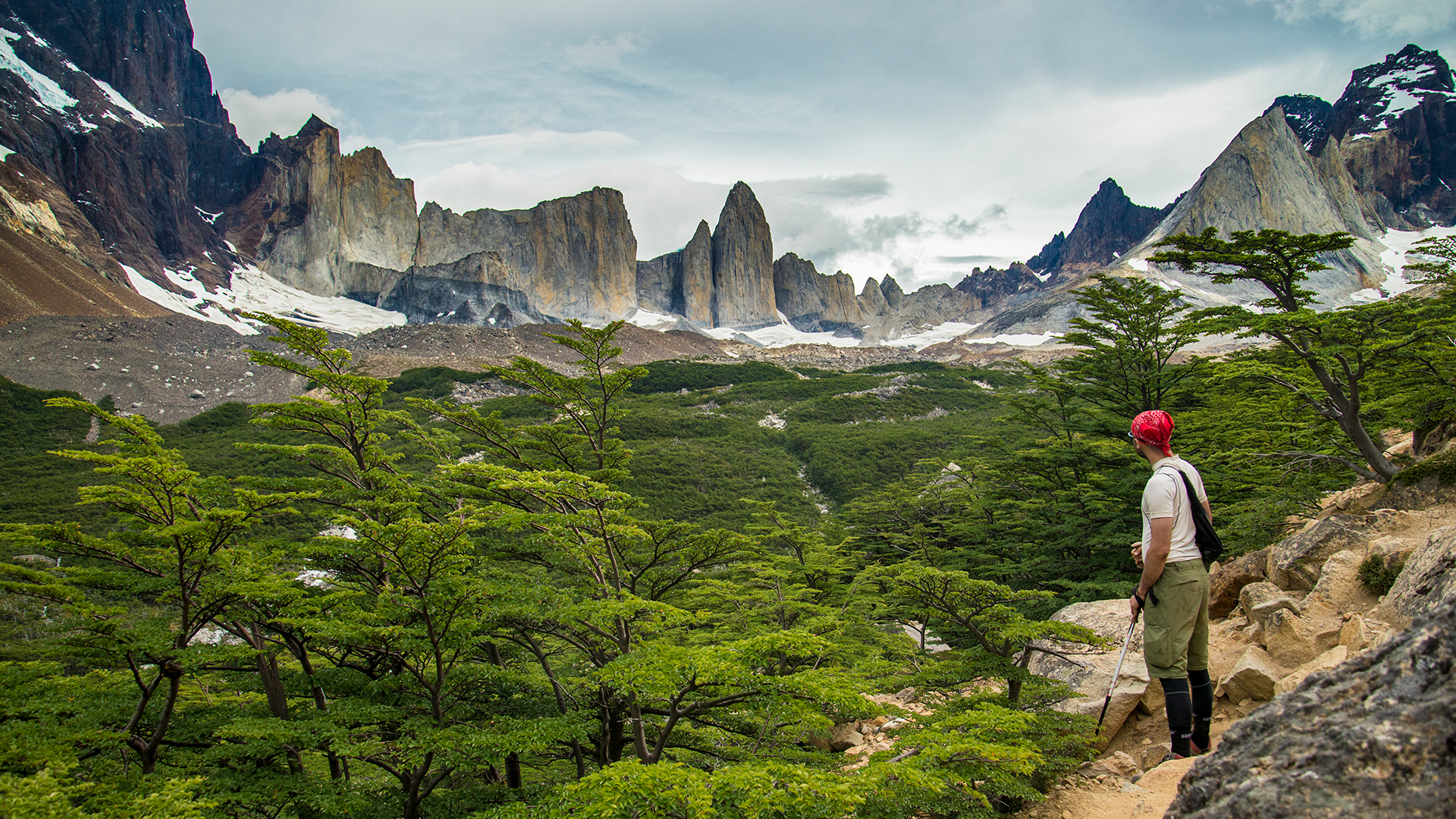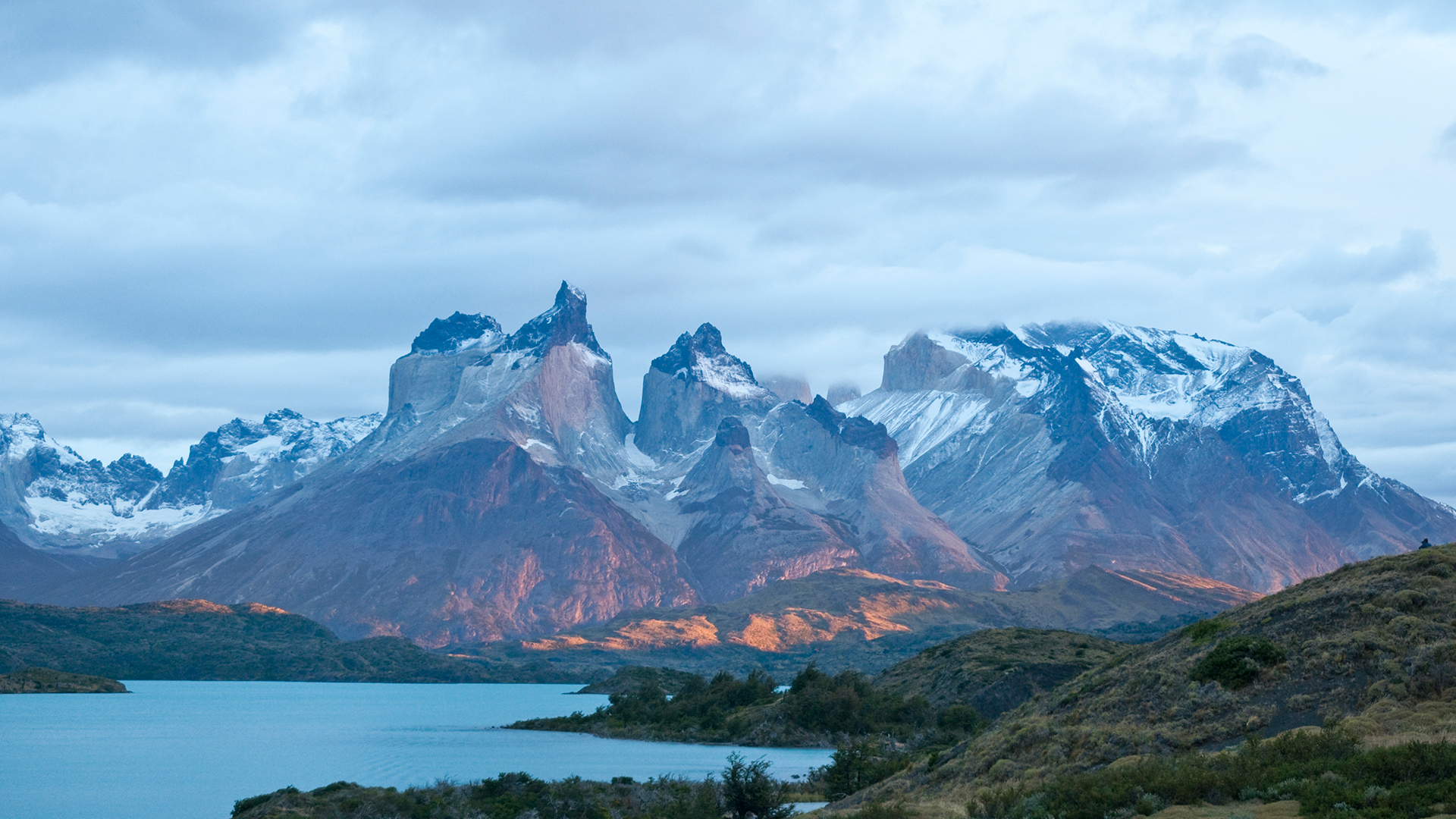Vol SCL → Puerto Natales (08h50 → 13h17). Route vers le Parc National Torres del Paine (Patrimoine UNESCO 1978). Découverte des points de vue emblématiques : massif du Paine, glaciers, les célèbres Torres granitiques. Observation de la faune patagonienne. Déjeuner et installation.